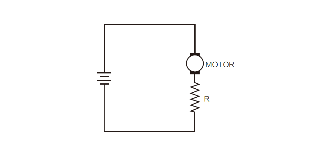 A resistor is placed between the power supply and the DC motor for restricting current by an increase in resistance to control the motor's speed in series.