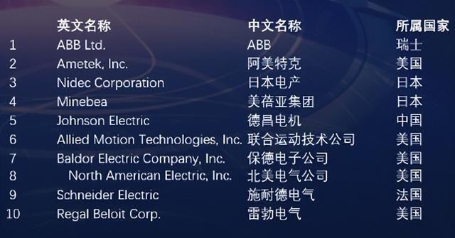 目前BLDC产业内,排名比较靠前的企业有ABB、阿美特克(AMTEK)、日本电产、美蓓亚集团、德昌电机、联合运动技术公司、保德电子公司、北美电气公司、施耐德电气、及雷勃电气(Regal Beloit Corporation)等。