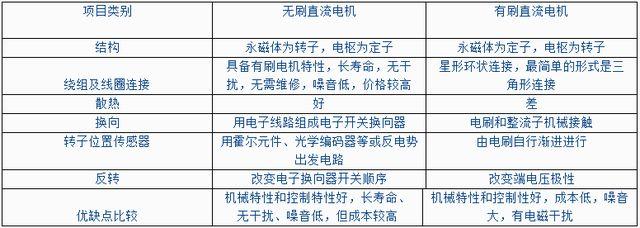 直流无刷电机并不是最早的产品,而是在有刷电机的基础上发展而来的,其结构上要比有刷电机结构复杂。直流无刷电机由电机主体和驱动器组成,区别于有刷直流电机,无刷直流电机不使用机械的电刷装置,而是采用方波的自控式永磁同步电机,并以霍尔传感器取代碳刷换向器,以钕铁硼作为转子的永磁材料。